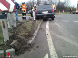 Nö: Pkw ratterte über Verkehrsinsel → Feuerwehr als Ersthelfer