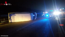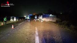 Ein Transporter kam von der Fahrbahn ab, verlor dabei seinen Anhänger, stürzte um und kam auf der dritten Spur zum Stillstand. Die Unfalsltelle wurde von der bereits anwesenden Polizei abgesichert. Die Freiwillige Feuerwehr Schwechat barg mittels Seilwinde den ebenfalls umgestürzten Anhänger sowie den Transporter.Die stark verunreinigte Fahrbahn wurde von der ASFINAG gereinigt, sowie beschädigte Verkehrsschilder entfernt. Nach rund zwei Stunden konnte die Sperre wieder aufgehoben werden.