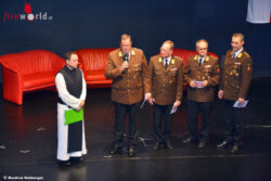 Beeindruckend war nicht nur das Bühnenbild und die Kulisse im Kulturhaus Schöffl, sondern auch die Einsatzstatistik die Johannes Enzenhofer präsentierte. Die Feuerwehren wurden zu 1822 technische Einsätze alarmiert und mussten zu 269 Bränden ausrücken. Insgesamt leisteten die Feuerwehren 342195 freiwillige Stunden.