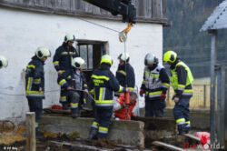 Als der Bauer sein Tier in dieser misslichen Lage fand, alarmierte er die Feuerwehr. Das Rind wurde zuerst an den Hörnern angehängt, um ein weiteres Absacken in die Grube zu verhindern. In weiterer folge musste ein Bergegurt um das Tier gelegt werden, bevor es mit Hilfe des SRF-Krans aus seiner misslichen Lage befreit werden konnte.
