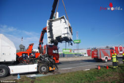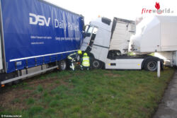 Oö: Aufräumarbeiten nach Verkehrsunfall mit zwei Lastkraftwagen in Ansfelden