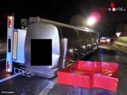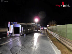 Unverzüglich rückten die Feuerwehren zu diesem Einsatz aus. Die ersteingetroffenen Einsatzkräfte konnten rasch die Meldung absetzen, dass keine Person im Fahrzeug eingeklemmt ist. Aus unbekannter Ursache stürzte der Anhänger eines Milchtransporters um und kam auf der ersten Fahrspur zu liegen. Durch die Einsatzkräfte wurde die Unfallstelle ausgeleuchtet und gemeinsam mit Kräften der Asfinag abgesichert.