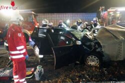 Beim Eintreffen der ersten Einsatzkräfte stellten diese, eine schwer verletzte Person, eingeklemmt in einem stark deformierten Fahrzeug fest. Umgehend wurde mit der Menschenrettung aus dem Unfallfahrzeug in Zusammenarbeit mit dem Notarztteam, dem Roten Kreuz und den Feuerwehren begonnen.