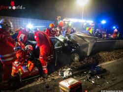 Der Lenker verlor aus bisher unbekannter Ursache die Kontrolle über sein Fahrzeug und prallte frontal gegen den Aufpralldämpfer eines aufgelassenen Autobahnparklatzes. Dabei wurde der Fahrzeuglenker schwer verletzt und laut Angaben des Notrufers in dem Unfallwrack eingeklemmt. Ein Großaufgebot der Einsatzkräfte machte sich auf dem Weg zum Unfallort.
