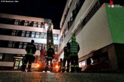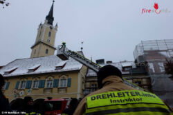 Eine weitere Zielsetzung für die Drehleiterbesatzung war, das Fahrzeug so zu positionieren, um von der gewählten Aufstellfläche aus, alle Personen retten zu können. Hier stellte die Berufsschule Rohrbach zum momentanen Zeitpunkt, auf Grund der vorhandenen Baustelle im Bereich zwischen Turnsaal und Internatstrakt, sicherlich eine dementsprechende Herausforderung dar.