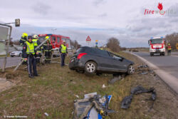 Dazu musste der Pkw zuerst mittels Seilwinde des Rüstlöschfahrzeuges aus dem Straßengraben gezogen werden, ehe es mit Rangierroller von der Fahrbahn verbracht und auf dem Straßenrand abgestellt werden konnte. Auslaufende Betriebsmittel konnten mittels Bindemitteln gebunden und die Fahrbahn musste von Trümmerteilen gereinigt werden. Abschließend wurde die verunreinigte Auffahrtsrampe mittels der Straßenwaschanlage des Rüstlöschfahrzeuges der FF Wienersdorf auch noch gereinigt.