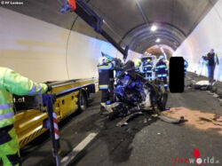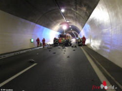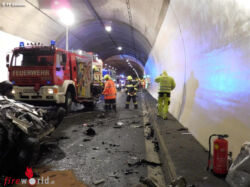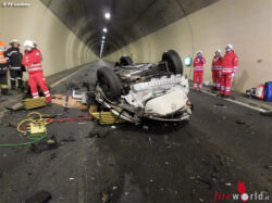 nnerhalb kürzester Zeit rückten die Feuerwehren zu diesem Einsatz aus. Aus ungeklärter Ursache prallte ein Fahrzeug gegen eine Tunnelnische und kam auf dem Dach zu liegen. Durch die Einsatzkräfte wurde der Brandschutz aufgebaut, das Fahrzeug gesichert, eine Zugangsöffnung mittels hydraulischen Rettungsgerät für den Notarzt hergestellt und parallel auslaufende Betriebsmittel gebunden.