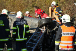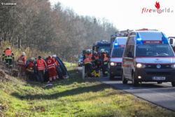 "Wir haben die Stichworte ‚Verkehrsunfall mit eingeklemmter Person in Fahrtrichtung Passau‘ bekommen und sind dann diese Einsatzstelle angefahren. Beim Eintreffen haben wir einen Pkw im Straßengraben – halb auf dem Dach liegend – mit einer eingeklemmten Person gefunden. Der Lenker wurde dann vorweg vom Notarzt stabilisiert. Anschließend haben wir ihn aus dem Unfallwrack befreit. Die Rettung ist an und für sich relativ zügig vonstattengegangen, wenn auch die Lage des Unfallfahrzeuges eher kompliziert war. Wir haben dann sozusagen das Schiebedach noch erweitert und den Lenker dann über das Dach befreit," schildert Roland Weber, Einsatzleiter der Feuerwehr Wels.