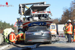 Am Dienstagvormittag um 11.34 Uhr wurde die Bruchsaler Feuerwehr und die Feuerwehr Forst zu einem Verkehrsunfall mit eingeklemmter Person auf die BAB 5 in Richtung Frankfurt gerufen. Beim Eintreffen der ersten Einsatzkräfte stellte sich heraus das sich der schwerverletzte Fahrer des Pkw bereits selbst befreien konnte.