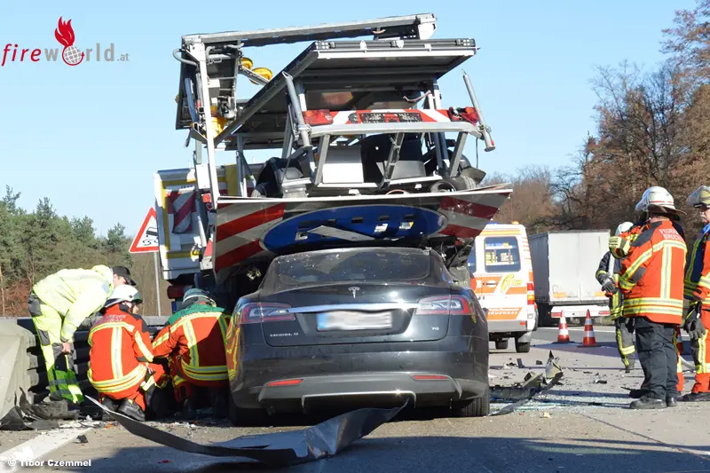 Deutschland: Elektrosportwagen kracht auf BAB 5 bei Bruchsal auf Sicherungsanhänger