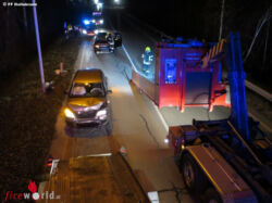 Die Einsatzkräfte wurden von der Autobahnpolizei mit dem Freimachen des Verkehrsweges beauftragt und verbrachten das Fahrzeug mit dem Wechselladefahrzeug zum nächstgelegenen Abstellplatz.