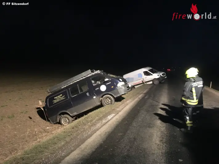 SITZENDORF / SCHMIDA (NÖ): In der Nacht auf Donnerstag, 1. Dezember 2016, kamen zwei Kastenwägen von der Fahrbahn von Sitzendorf Richtung Niederschleinz ab. Dabei rutschten sie rückwärts in den Straßengraben und blieben hängen.