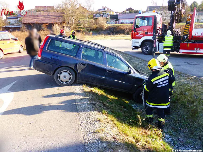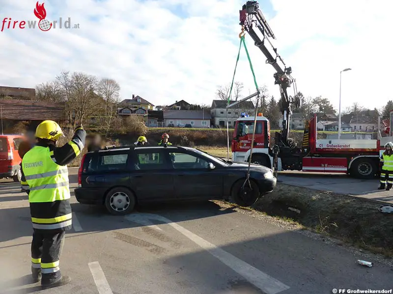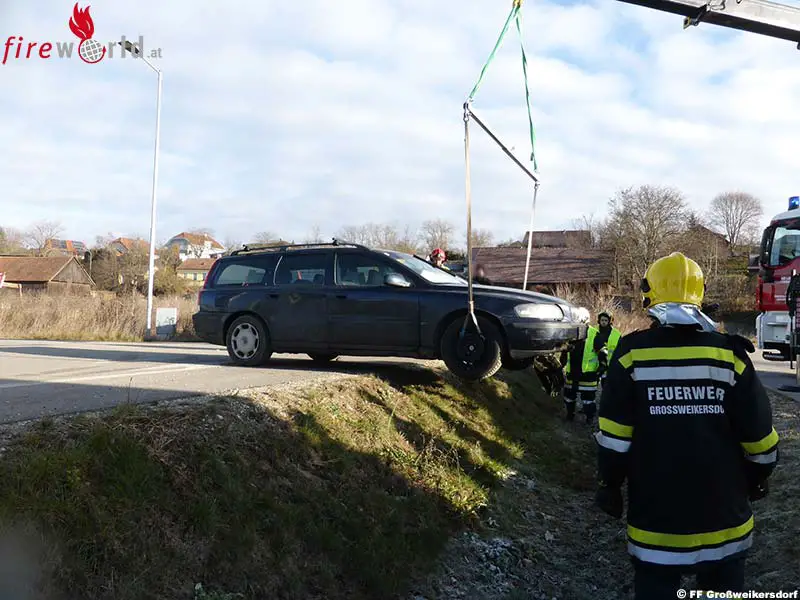 GROSSWEIKERSDORF (NÖ): Am 3. Dezember 2016, um 9.45 Uhr, wurde die Freiwillige Feuerwehr Großweikersdorf mittels Pager und Blaulicht-SMS mit dem Alarmtext „Fahrzeugbergung, Pkw im Graben, in Großweikersdorf am Spar Parkplatz“ alarmiert.