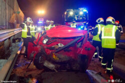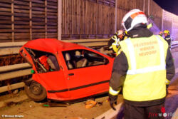 Glück im Unglück, hatte der Lenker des roten Kleinwagens mit der Panne, welcher sich zum Zeitpunkt des Unfalls nicht im Fahrzeug befand. Die Fahrerin des Audis wurde jedoch vom anwesenden Rettungsdienst zur weiteren Behandlung ins Krankenhaus gebracht. Der extrem deformierte Kleinwagen wurde derart stark durch den Unfall in die Leitschiene gedrückt, dass dieser mit Hilfe der Fahrzeugseilwinde des 2.Hilfeleistungslöschfahrzeug Wiener Neudorf (2.HLF-A 3) heraus gezogen werden musste. Im Anschluss führten die beiden Feuerwehren die Bergung der zwei Fahrzeuge durch und konnten nach rund 50 Minuten wieder einrücken. Die Feuerwehr Wiener Neudorf stand mit vier ausgerückten Fahrzeugen und 18 Mann im Einsatz.