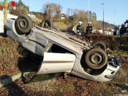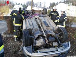 Die Einsatzkräfte der Feuerwehr betreuten den Unfall-Lenker bis zum Eintreffen des Notarztes. Nach der Unfallaufnahme durch die Polizeiinspektion Laakirchen stellte die Feuerwehr das Fahrzeug mittels Einbauseilwinde auf die Räder und band ausgeflossene Treibstoffe.