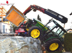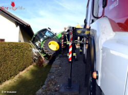 HOCHART (BGLD): Am Vormittag des 10.12.2016 wurde die Feuerwehr Pinkafeld von Kameraden der Feuerwehr Hochart zu einer Traktorbergung nach Hochart nachalarmiert. Aus ungeklärter Ursache war ein Traktor (trotz angezogener Feststellbremse!!) ins Rollen geraten und rückwärts über eine Böschung gestürzt.