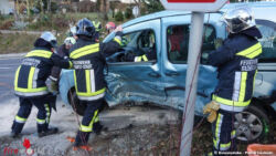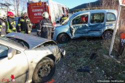 GLOGGNITZ (NÖ): Gegen 14:15 Uhr wurden die Feuerwehren Gloggnitz Weissenbach und Gloggnitz Stadt am 9. Dezember 2016 zu einem Verkehrsunfall mit eingeklemmter Person auf die Schlaglstrasse, Höhe EVN Umspannwerk alarmiert. Aus noch unbekannter Ursache kam es zu einem Zusammenstoß zweier Fahrzeuge.