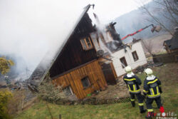 Als die ersten Einsatzkräfte eingetroffen sind, stand bereits ein großer Teil des Hauses im Vollbrand. Aufgrund der sehr abgelegenen Lage, war es notwendig, eine hundertmeterlange Zubringerleitung zu legen, auch ein nahe gelegener Bach diente zur Wasserversorgung. Die rund 150 Einsatzkräfte konnten jedoch nur noch benachbarte Gebäudet vor einer Brandausbreitung schützen. Der Bewohner Markus B. (45) Kraftfahrer, war zum Zeitpunkt des Brandausbruch im Haus und konnte noch das Fahrzeug, persönlichen Gegenständen, und sich selbst in Sicherheit bringen. Der Brand hat laut seinen Angaben zufolge im Bereich der Werkstatt seinen Ausgang genommen.