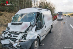 Fast zeitgleich ereignete sich auf der A2 im Wechselabschnitt ein zweiter schwerer Verkehrsunfall. In Fahrtrichtung Graz fuhr der Lenker eines Kleintransporters aus noch unbekannter Ursache zwischen Edlitz und Krumbach auf einen Sattelschlepper auf. Sowohl der Lenker als auch sein Beifahrer erlitten Verletzungen unbestimmten Grades und wurden vom RK Aspang ins Krankenhaus gebracht. Der LKW Lenker blieb unverletzt. Nach der Abischerung durch die Autobahnpolizei und die Asfinag wurde die Bergung des schwer beschädigten Kleintransporters von der FF Aspang durchgeführt.