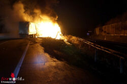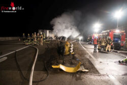 ANSFELDEN (OÖ): Großes Glück hat in der Nacht auf den 13. Dezember 2016 ein Lkw-Fahrer beim Brand seines Fahrzeuges auf der Westautobahn gehabt. Der Lkw war nach einem Unfall in Flammen aufgegangen. Der 37-jährige Lenker aus Serbien lag neben dem brennenden Wrack.