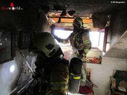 Zeitgleich wurde vom zweiten Atemschutztrupp die Frau im 1. Obergeschoß erstversorgt. Nach der Belüftung des Einfamilienhauses wurde die Dame dem Rettungsdienst übergeben. Die Dame wurde vom Rettungsdienst ins Klinikum Klagenfurt gebracht. Im Bereich der Brandstelle musste die Wandverkleidung entfernt werden um die Glutnester zu löschen. Die Berufsfeuerwehr Klagenfurt wurde von der Freiwilligen Feuerwehr Haidach vor Ort unterstützt. Die Bereitschaft haben die Freiwilligen Feuerwehren Hauptwache und St. Martin übernommen.