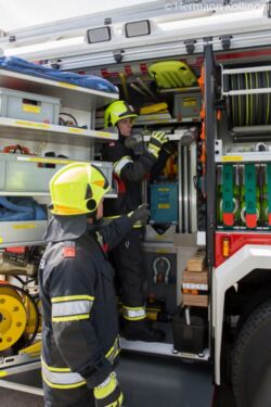 Eines sei bei der Konzeption des Fahrzeuges auch erwähnt. Die Feuerwehr Alkoven hat als zweite wasserführende Einheit ein Tanklöschfahrzeug (TLF-A 4000) im Fuhrpark. Dieses ist klarerweise speziell für den Branddienst ausgeführt und ausgerüstet (200 l fixer Schaumtank, Wasserwerfer und dergleichen). Daher übernimmt das nnun beschaffte Rüstlöschfahrzeug in erster Linie den technischen Part und ergänzt den Brandeinsatz als zweites Fahrzeug und ist primär für die Kombination mit der Teleskopmastbühne vorgesehen.