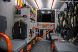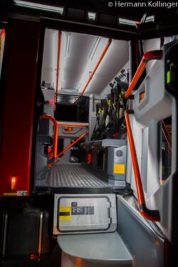 Für die kalte Jahreszeit wurde eine Standheizung eingebaut, da die normale Heizanlage im Regelfall die Wärme im hinteren Teil nicht so hinbekommt wie in der ersten Reihe. Durch die gegen die Fahrtrichtung angebrachten Atemschutzgeräte entsteht schlussendlich auch eine räumliche Trennung. Radio und Funk sind ebenfalls per Lautsprecher in den hinteren Mannschaftsteil eingeleitet und in deren Lautstärke regelbar. Ebenso kann die Innenraumbeleuchtung, welche bewusst einfärbig gehalten worden ist, auch von der Mannschaft selber ein- und ausgeschaltet werden kann, was beispielsweise beim nächtlichen Anlegen der Atemschutzgeräte während der Anfahrt recht dienlich ist. Aus sicherheitstechnischen Gründen wurde auch im Handlauf der Türen beidseitig eine LED-Beleuchtung eingezogen.