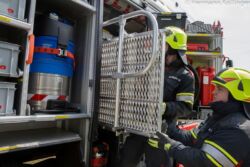 Bis wir uns im Anschluss das neue Fahrzeug strukturiert ansehen können, waren selbstverständlich einige Rohbaubesichtigungen und Besprechungen erforderlich, die bei Rosenbauer von der Arbeitsgruppe durchgeführt worden sind. Kurz vor der Auslieferung erhielten die Maschinisten der FF Alkoven vom Feuerwehrkommandanten, der bei Rosenbauer tätig ist, eine virtuelle Ausbildung per Software. Ebenso – wie allen anderen Übungsteilnehmern – wurden zudem bei einer Schulung bereits Fotos gezeigt, wo was aufgepackt sein wird. Somit war es möglich, am Tag der Auslieferung den Neuling in den Dienst und das bisherige RLF-A außer Dienst zu stellen. Ohne Übergangszeit.