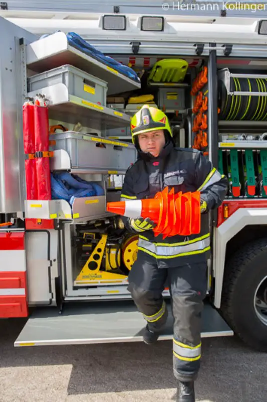„Wenn du nicht weiter weißt, dann bilde einen Arbeitskreis“ lautet ein nicht unbedingt gut gemeintes Sprichwort in der Arbeitsbranche. Auch bei der Feuerwehr Alkoven richtete man einen derartigen Kreis ein, jedoch nicht, um der Ratlosigkeit entgegen zu wirken, sondern die beste Variante für das Ersatzfahrzeug zu erreichen. Dieser setzte sich aus dem ersten Kommandant-Stellvertreter Markus Unter (als Fahrmeister), dem zweiten Kommandant-Stellvertreter Wolfgang Beisl als Fahrzeugausbildungsverantwortlichen, Wolfgang Neumayr als Fahrzeugbetreuer, den beiden Zugskommandanten – Erwin Göttfert (als Kommandant des technischen Zuges) sowie Martin Burger (als Ausbilder für dieses Fahrzeug sowie Kommandant des Katastrophenschutzzuges) und Michael Baumann zusammen. „Mit dieser Konstellation hatte man den zusätzlichen Vorteil, dass sich in dem Team Leute befanden, die auch beruflich mit dem Feuerwehrwesen verbunden sind und so zusätzliche Erfahrungen einbringen konnten“, leitet Markus Unter das Gespräch ein. Eine der ersten Aufgaben bestand einmal darin, die Ausrüstung zu analysieren. Dazu Unter weiter: „Wir sahen uns an, was hat uns bei den Einsätzen in den letzten 15 bis 20 Jahren immer wieder einmal gefehlt bzw. was hätte uns die Arbeit erleichtert und was hatten wir zwar mit, brauchten es jedoch nicht.“ Fiel Diverses weg, kam jedoch das Manko von beispielsweise Rettungsplattform, mehr und und flexiblerem Unterbaumaterial und dergleichen auf die Bestellliste. Diese Ausrüstung hätte trotz vieler in Eigenregie durchgeführter Umbauten keinen Platz am bestehenden Rüstlöschfahrzeug mehr gefunden.