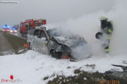Zwei im Gegenverkehr heranfahrende VW Golf- und Opel Corsa-Fahrerinnen hielten mit Warnblinklicht wegen des verletzten Vogels an. Das wiederum erkannte eine nachfolgende 32-Jährige zu spät, sie fuhr mit ihrem Ford Focus auf und schob Golf und Corsa aufeinander. Durch den Aufprall wurden zwei Autofahrerinnen leicht verletzt, der Ford ging unterdessen in Flammen auf. Die Feuerwehr Meißenheim/Kürzell war zwar rasch vor Ort, konnte jedoch das Ausbrennen des Focus nicht mehr verhindern. Durch die Hitzeeinwirkung wurde auch der Fahrbahnbelag der L 75 in Mitleidenschaft gezogen. Die drei Autos mussten abgeschleppt werden, die Gesamtsachschadenshöhe beträgt 10.000 Euro. Der verunfallte Großvogel war so schwer verletzt, dass er von einem Jagdpächter erlöst werden musste.