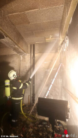 Der Müllraum wurde durch die Feuerwehr belüftet und mit der Wärmebildkamera auf Glutnester überprüft. Ein Teil der Deckenkonstruktion musste abgenommen werden, um ein Glutnest abzulöschen. Durch den raschen Einsatz der Feuerwehr und die frühzeitige Meldung konnte ein weiterer Schaden und eine Verrauchung weiterer Teile des Gebäudes verhindert werden. Die Feuerwehr Wiener Neustadt stand mit vier Fahrzeugen und 14 Mann eine knappe Stunde im Einsatz. Die Brandursache ist derzeit Gegenstand der polizeilichen Ermittlungen.