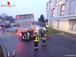 GRAFENWÖRTH (NÖ): Sehr viel Pech hatten zwei Lenker einer Spedition bei der Belieferung des Grafenwörther SeneCura Sozialzentrums: Nachdem der erste Lkw beim Lieferanteneingang vorne weg ins Bankett gerutscht und aufgesessen war, setzte der zweite Lenker zurück und blieb mit der Hinterachse ebenfalls in der Böschung stecken.