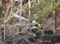 110 Mann von sieben Feuerwehren kämpften an diesem Sonntagnachmittag gegen die Flammen und verhinderten einen großflächigen Waldbrand.