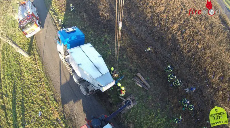 mehr lesen ...GARSTEN (OÖ): „Lkw-Bergung in Garsten“ war der Alarmierungstext vom 19.12.2016 um 13:30 für den technischen Zug der Freiw. Feuerwehr Steyr. Binnen kürzester Zeit begaben sich das Kran- sowie das schwere Rüst- und Begleitfahrzeug zur Einsatzadresse. Hier wurden sie bereits von den Kräften der FF Saass und Garsten erwartet.
