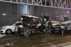 WIEN, 3. BEZIRK: Gegen 18.20 Uhr des 20. Dezember 2016 kam es in Wien Landstraße zu einem Verkehrsunfall zwischen einem Pkw und einem Fiakergespann. Der Kutscher und eines der zwei Pferde des Fiakergespanns wurden bei dem Unfall unbestimmten Grades verletzt. Dabei stürzte das Pferd und wurde mit den Hufen unter dem Pkw eingeklemmt.