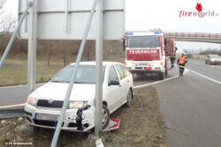 GRAFENWÖRTH (NÖ): Zur Bergung eines verunfallten Pkw wurde die Feuerwehr Grafenwörth am Vormittag des 22.12.2016 auf die S5 Richtung Wien gerufen. Bei der Ausfahrt Kirchberg/Wagram war ein polnischer Lenker mit seinem Fahrzeug in ein Verkehrszeichen gekracht und darin steckengeblieben.