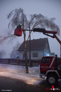 GROSS SIEGHARTS (NÖ): Auf Anforderung der Stadtgemeinde Gr. Siegharts und der Straßenmeisterei wurde die Feuerwehr Gr. Siegharts am Nachmittag des 23. Dezember 2016 alarmiert. Durch die tagelang anhaltende Wetterlage waren die Bäume entlang der L8117 im Ortsgebiet Gr. Siegharts-Waldreichs stark mit Reif beschlagen, wodurch die Äste abknickten und auf die Fahrbahn zu fallen drohten.