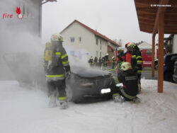 FÜRSTENFELD (STMK): Gegen 15.10 Uhr wurde die Feuerwehr Fürstenfeld am 22. Dezember 2016 mittels Personenrufempfänger und Sirene zu einer Rauchentwicklung an einem Pkw alarmiert. Der ersteintreffende Offizier vom Tag stellte bei der Lageerkundung fest, dass das Fahrzeug bereits in Brand stand und leitete darauf unverzüglich eine erste Brandbekämpfung mit der CAFS-Anlage ein.