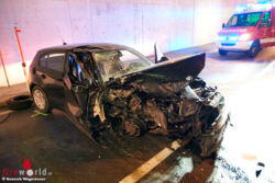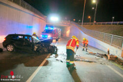 Nach ersten Informationen kam ein Lenker aus bisher unbekannter Ursache von der Straße ab und prallte frontal gegen die Betonmauer des Tunnelportals. „Sofort wurde mit unserer Mannschaft und einer Wärmebildkamera eine Suchaktion gestartet. Aufgrund weiterer Ermittlungen der Polizei konnten wir die Suche nach kurzer Zeit wieder abbrechen.“ so der Einsatzleiter weiter. Parallel zur Personensuche wurden umfangreiche Aufräumarbeiten durch die Feuerwehr durchgeführt.