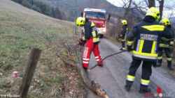 Ein Teil von einem Baum wurde durch den Sturm abgerissen und lag gefährlich über die Fahrbahn. "Wir entfernten fachgerecht diesen großen Ast und säuberten anschließend die Fahrbahn. Im Anschluss wurde noch in die Wienerstraße und Hauptstraße gerufen, um durch den Sturm umgestürzte Plakatwände zu sichern", heißt es seitens der Feuerwehr.