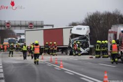 ANSFELDEN (OÖ): Wieder ist es am Mittwochnachmittag, den 28. Dezember 2016, auf der A1 (Westautobahn) bei Ansfelden zu einem schweren Lkw-Unfall gekommen. Zum Glück konnten die beiden Lenker unverletzt aussteigen.