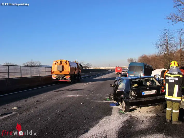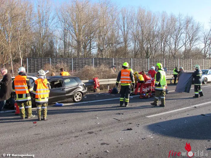 HERZOGENBURG (NÖ): Zu einem Verkehrsunfall mit insgesamt fünf beteiligten Fahrzeugen und mehreren verletzten Personen kam es am 30. Dezember 2016 auf der Kremser Schnellstraße S33, Richtungsfahrbahn S5, Höhe Vollanschlussstelle Herzogenburg-Nord.