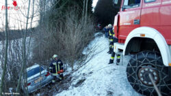 Der Lenker konnte sich selbst unverletzt aus dem Unfallwagen befreien. Die FF Krumbach sicherte die Unfallstelle ab und musste als Bergungsvorbereitung einiges an Gestrüpp wegschneiden. Danach konnte das Fahrzeug mittels Seilwinde geborgen werden. Der Fahrzeuglenker konnte danach die Fahrt fortsetzen.