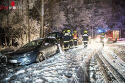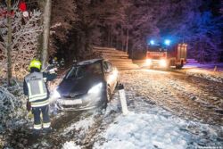 SANKT FLORIAN (OÖ): Kurz vor Mitternacht wurde die Feuerwehr Sankt Florian am 2. Jänner 2017 von der Landeswarnzentrale Oberösterreich zu einer Fahrzeugbergung alarmiert. Eine Fahrzeuglenkerin war aufgrund der winterlichen Fahrverhältnisse, in einem Waldstück zwischen Sankt Florian und Ansfelden von der Fahrbahn gerutscht.