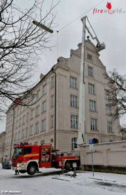 MÜNCHEN (BAYERN): Ein loses Blechteil auf dem Dach einer Grundschule an der St.-Martin-Straße in München beschäftigte die Feuerwehr am 4. Jänner 2017 über drei Stunden. Gegen halb ein Uhr wurde der Integrierten Leitstelle ein loses Blechteil auf einem Schuldach in Obergiesing gemeldet.