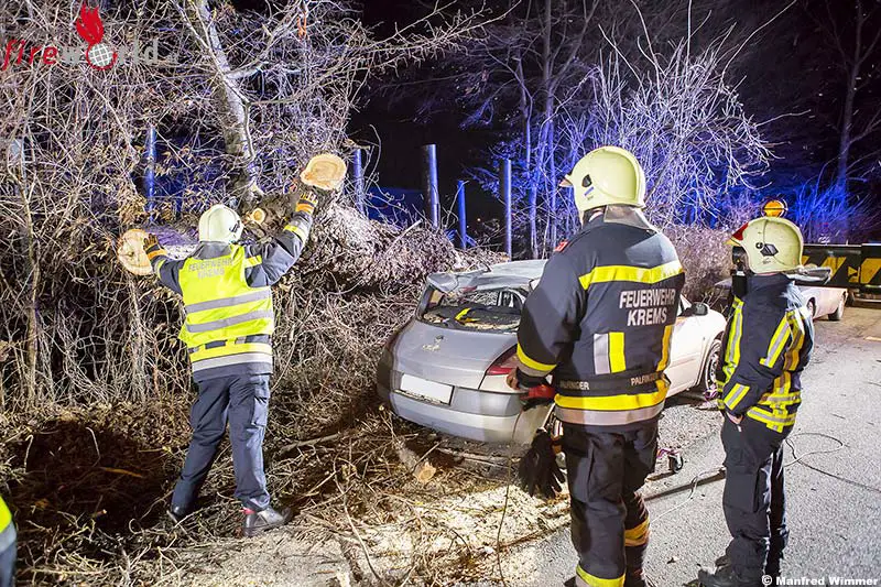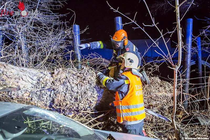 KREMS AN DER DONAU (NÖ): Sturmtief Axel sorgte am 4. Jänner 2017 auch für die Einsatzkräfte der Feuerwehr Krems für eine unruhige Nacht. Gegen 3.30 Uhr wurde die diensthabende Mannschaft von der Bezirksalarmzentrale Krems zu einem Einsatz nach Sturmschaden alarmiert. Rasch rückten mehrere Fahrzeuge zum Einsatzort aus.