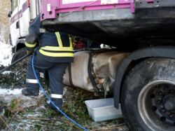 Bgld: Lkw-Unfall in Grafenschachen → Dieselaustritt und Bergung mit zwei Seilwinden