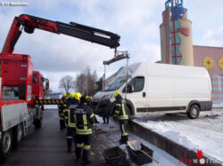 Um 12:10 Uhr wurde die Freiw. Feuerwehr Waidhofen/Thaya zur Bergung des Lieferwagen alarmiert. Mittels Kran des Wechselladefahrzeuges wurde der Wagen auf der Vorderseite angehoben und gesichert am Parkplatz abgestellt. Anschließend wurde das ausgeflossene Motoröl mittels Ölbindemittel gebunden. Der Einsatz konnte um 12:50 Uhr beendet werden und die Einsatzkräfte wieder ins Feuerwehrhaus einrücken.