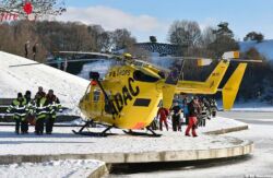 Eine Touristenfamilie betrat mit ihrem 8 Jahre alten Kind die Eisfläche des Olympiasees zwischen der Schwimmhalle und dem Olympiastadion. Unter dem Gewicht der Eltern brach plötzlich die Eisdecke ein. Die 39-Jährige Mutter und der 40 Jahre alte Vater stürzten in das eiskalte, zum Glück nur hüfttiefe Wasser. Das Kind blieb erschrocken auf der Eisfläche zurück.