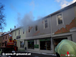 Die alte Bausubstanz mit einer hohen Brandlast, fehlende Brandabschnitte, die enge Verbauung zum Nachbarobjekt, schlechte Angriffsmöglichkeiten an der Rückseite des Objektes und ein hoher Bedarf an Atemschutzträgern bei einer möglichen Durchzündung veranlaßten den Einsatzleiter die Alarmstufe auf B3 zu erhöhen sowie die Drehleiter Schrems anzufordern. Über die Leitstelle Florian Nö. wurden daraufhin die Feuerwehren Gmünd-Eibenstein, Gmünd-Breitensee, Hoheneich, Albrechts, Waldenstein, Dietmanns, Schrems, Ceske Velenice und Trebon zum Einsatzort beordert. Im weiteren Verlauf bekämpften insgesamt 6 Atemschutztrupps der Feuerwehren Stadt Gmünd, Hoheneich, Albrechts, Waldenstein und Dietmanns den Brand im Innenangriff, Reservetrupps waren in ausreichender Zahl vor Ort. STEIG Gmünd sorgte mit Unterstützung der Feuerwehr Ceske Velenice für eine vorsichtige Öffnung der Dachhaut, eine Durchzündung war bis zu diesem Zeitpunkt nicht auszuschließen.